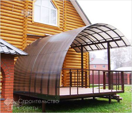 Эти конструкции могут быть отделаны авторским кованым орнаментом, что придаст изделию красивый эстетический вид. И главное достоинство поликарбоната – это небольшой вес. Дело в том, что от веса кровли напрямую зависит толщина и мощность конструкции. Навесы для автомобиля из поликарбоната изготавливают особенно часто. Все дело в простоте возведения таких конструкций.