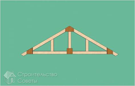 - Собрать стропильную конструкцию и поднять наверх. Для соединения брусьев используют шурупы. Опоры соединяются с помощью специальной врубки.