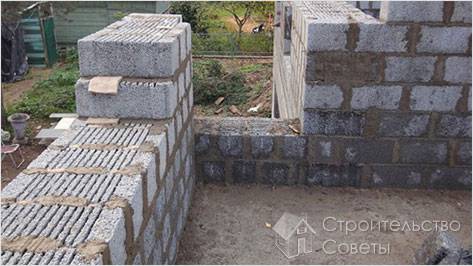 Этап №3. Кладка стен. Для стен подойдут пустотелые блоки из керамзитобетона.