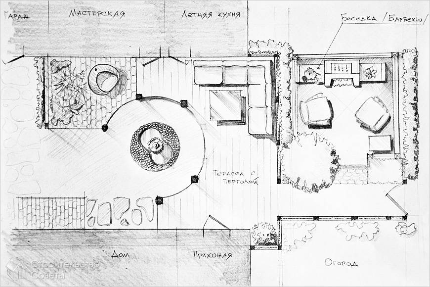 Для того чтобы барбекюшница из кирпича отлично гармонировала с интерьером участка и была пожаробезопасной, важно тщательно продумать место для ее строительства.