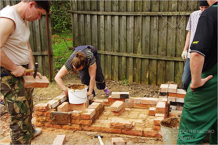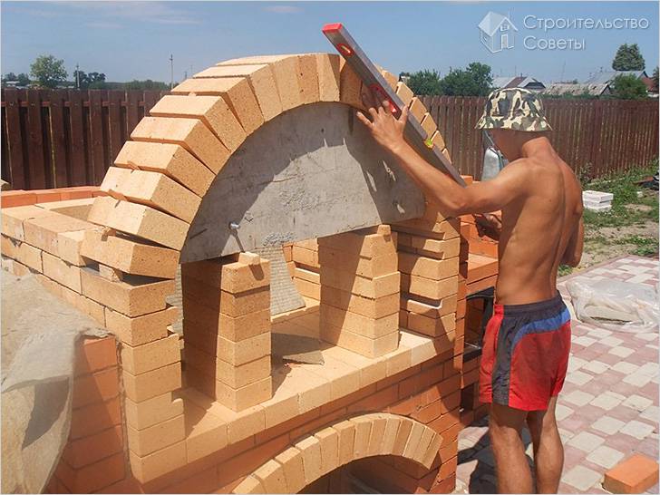 Прежде чем сделать такую конструкцию, следует приобрести в необходимом количестве облицовочный и огнеупорный кирпич. Среди различных видов материала стоит отдать предпочтение шамотному кирпичу, из которого строят печи. Он прекрасно выдерживает высокую температуру.