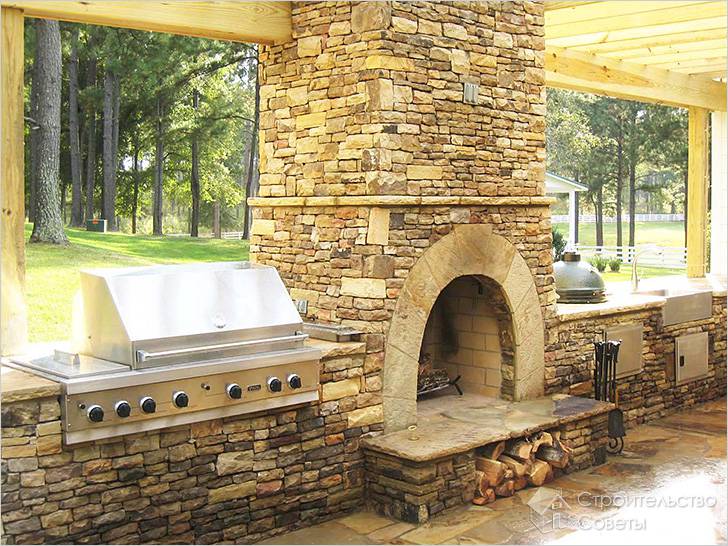 В идеале пьедестал должен вмещать в себя поленницу, в которой бы разместилось дров, как минимум, на три топки. Для работы понадобится облицовочный кирпич.