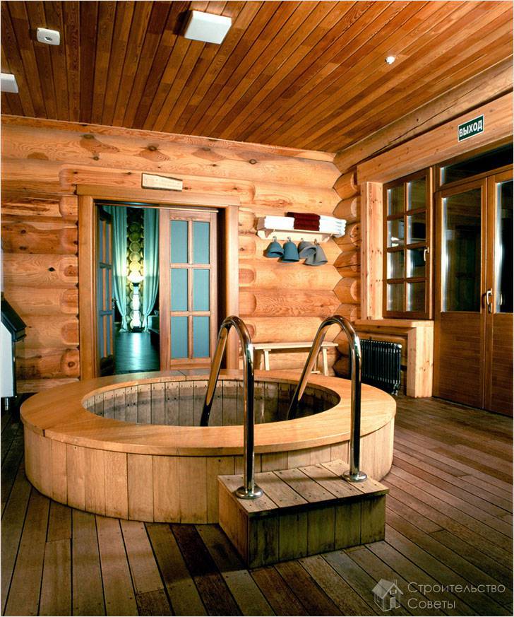 Отдельным пунктом нужно выделить СПА-бассейны. Они могут быть приобретены уже в готовом виде и предназначаются больше для расслабления, нежели для плавания. Некоторые владельцы загородных участков в одном помещении бани ставят как обычный вариант, так и СПА или джакузи.