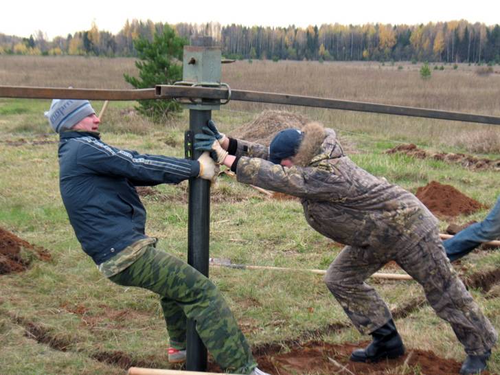 - Сваи можно установить с помощью специальной техники или вручную. Последний вариант сокращает расходы на строительство и делает возможным возведение фундамента в тех районах, где подобные услуги не предоставляются.
