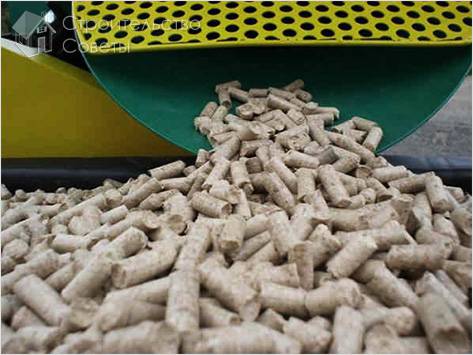 - в итоге выходят гранулы, количество влаги в которых составляет 12%, а размер соответствует типу оборудования;