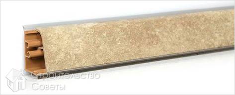 На втором месте находятся алюминиевые изделия с верхним и нижним уплотнителями, которые дают возможность прикрепить плинтус к столешнице без зазоров.