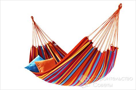 Однако приобретение качественного гамака может ударить по карману, так как ценовой доступностью эти изделия, к сожалению, не отличаются. Наверное, стоит задуматься над тем, как сделать гамак своими руками. К слову, ничего сверхсложного в его конструкции нет и его вполне можно сделать в домашних условиях. Достаточно приобрести или поискать дома необходимые комплектующие (крепежные, расходные и отделочные материалы), приложить определенные усилия и потратить немного свободного времени. Зато потом вы сможете отдыхать на собственноручно сделанном гамаке в свое удовольствие.