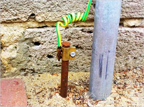 В первую очередь нужно подготовить прочный металлический стержень (высотой около двух метров) со значительным диаметром или шириной. Потом подбирают наиболее подходящее место на участке рядом с домом. В металлическом изделии сверху делают отверстие для самореза, чтобы потом соединить его с проводами. Металлический стержень вбивают глубоко в грунт.