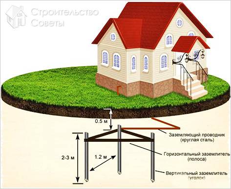 Качество заземляющего устройства зависит от показателей сопротивления распространения электрического тока при обрыве цепи (чем этот показатель меньше, тем лучше). Соответственно, чем сложнее применяемая система и глубже расположен проводник, тем надежнее будет заземление дома.
