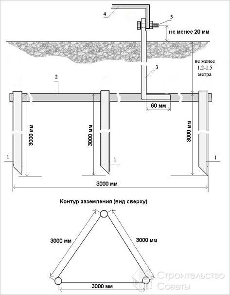 Более простой и доступный вариант – забивание в землю в трех местах электродов, которые потом соединяются между собой. Расстояние между закопанными электродами должно соответствовать глубине их залегания.