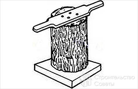 - Затем нужно будет уплотнить грунт с использованием ручной трамбовки, изготовленной из простого бревна (см. рисунок).