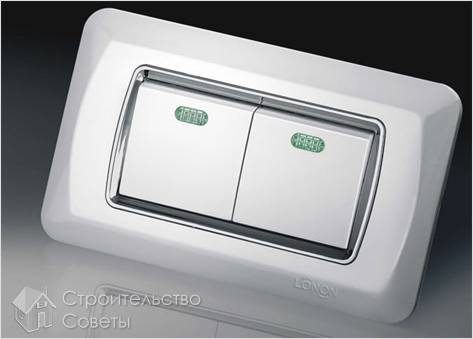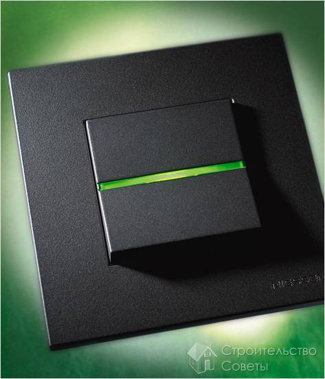 Выключатели с подсветкой (со светодиодами) очень удобны для пользования в темноте. Маленькая, часто цветная лампочка точно показывает, куда нужно нажать, чтобы зажегся свет.