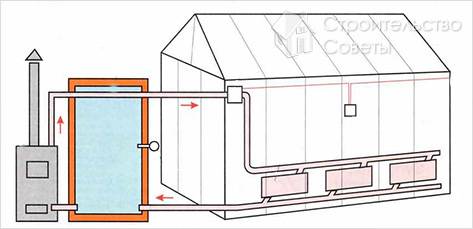 Эти трубы располагаются по всему периметру теплицы. Для циркуляции воды по трубам используется гидронасос. Топливо используется так же, как и при печном отоплении.