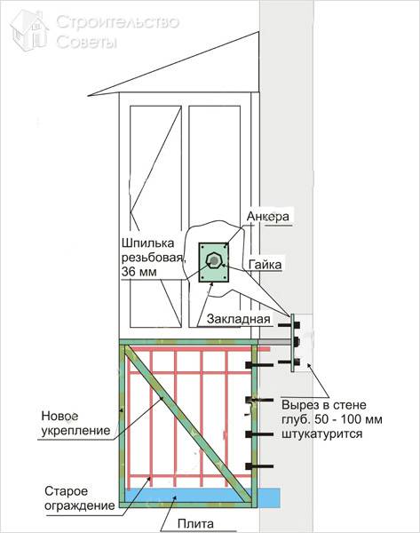 Как видите, перед установкой системы остекления придется заняться тщательным укреплением парапета вашего балкона.