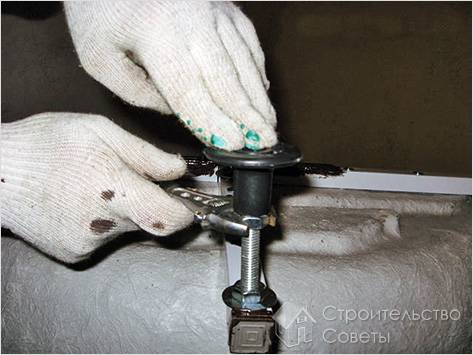 Перед тем как установить чугунную ванну, рекомендуется предварительно закрепить на её ножках специальные регулировочные винты с фиксирующей гайкой. Затем нужно повернуть ванну на 90 градусов таким образом, чтобы она опиралась на две установленные ножки. С ближнего к вам края необходимо установить под неё устойчивую подпорку длиной порядка 60 см. Затем на основании закрепляются две оставшиеся ножки, после чего временную опору можно удалить и перейти к выравниванию ванны.