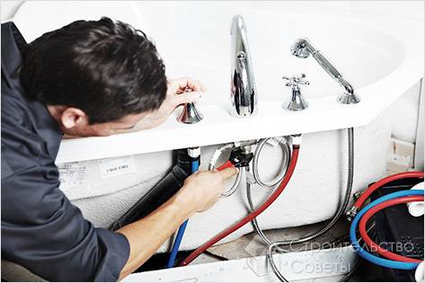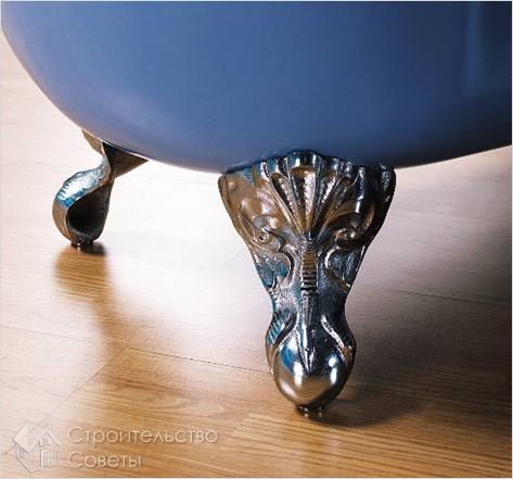 Вслед за этим (воспользовавшись комплектом таких же колец-прокладок) вы можете установить и закрепить на основании ванной сифонный перелив, который соединяется затем с отводящей переливной трубой, входящей в систему слива. В конце к сифону подсоединяется сливной патрубок, другой конец которого встраивается в канализационный сток. По завершении монтажных операций с сифоном приступаем к установке ножек, причём сначала монтируем только две опоры. При креплении опор с помощью клиньев последние забиваются не сразу, а постепенно, с лёгкой подбивкой их по всем направлениям.