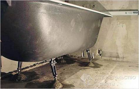 В том случае, если ваша ванна оснащена регулируемыми по высоте опорами, её выравнивание (с использованием обычного строительного уровня) проводится с помощью имеющихся на них регулировочных винтов. В связи с тем, что чугунная ванна отличается высокой жёсткостью своей структуры, её выравнивание можно производить, ориентируясь на отдельные участки конструкции, имеющие достаточную протяжённость.