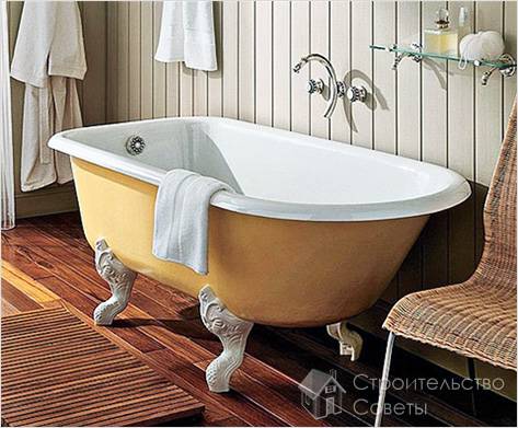 Современные чугунные ванны отличаются повышенной прочностью и завидной теплоёмкостью, а также высокой стойкостью своего защитного покрытия. Кроме того, они обладают хорошей устойчивостью и не требуют для своей установки дополнительного крепежа. При рассмотрении вопроса о том, как установить чугунную ванну своими руками, особое внимание нужно обратить на то, чтобы она была установлена строго горизонтально. Ориентиром для этого могут служить её верхние кромки; при этом не должно наблюдаться ни малейшего уклона в сторону слива, который уже предусмотрен самой конструкцией этого изделия.