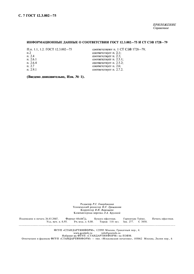 Информационные данные о соответствии ГОСТ 12.3.002-75 и СТ СЭВ 1728-89