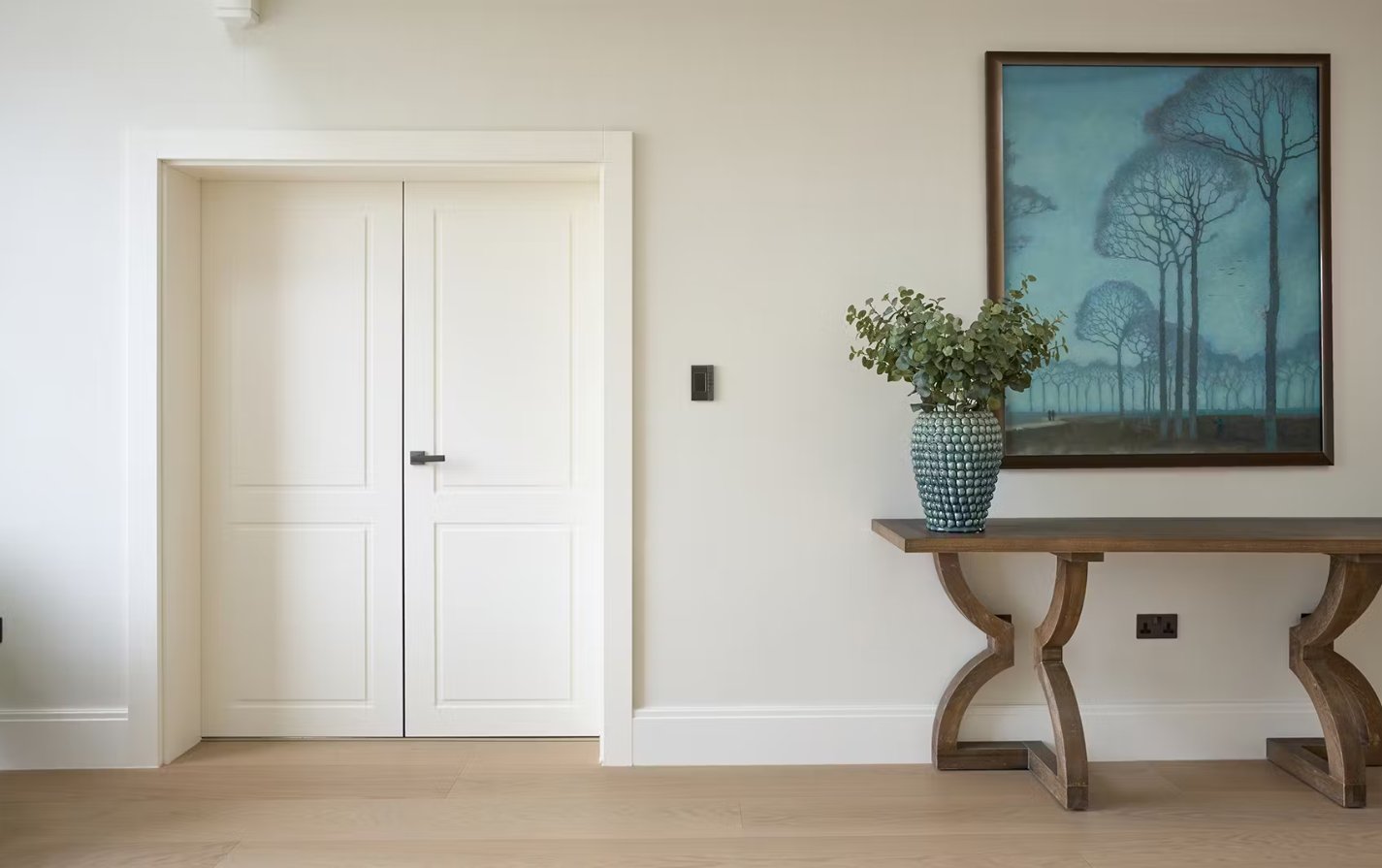 - Учитывайте цветовую гамму. Двери могут сливаться со стеной или, наоборот, выделяться — всё зависит от концепции дизайна;