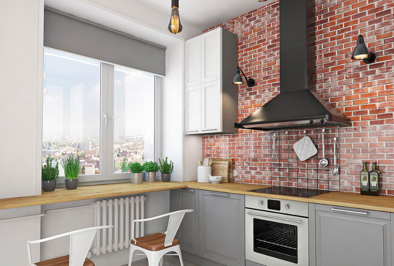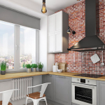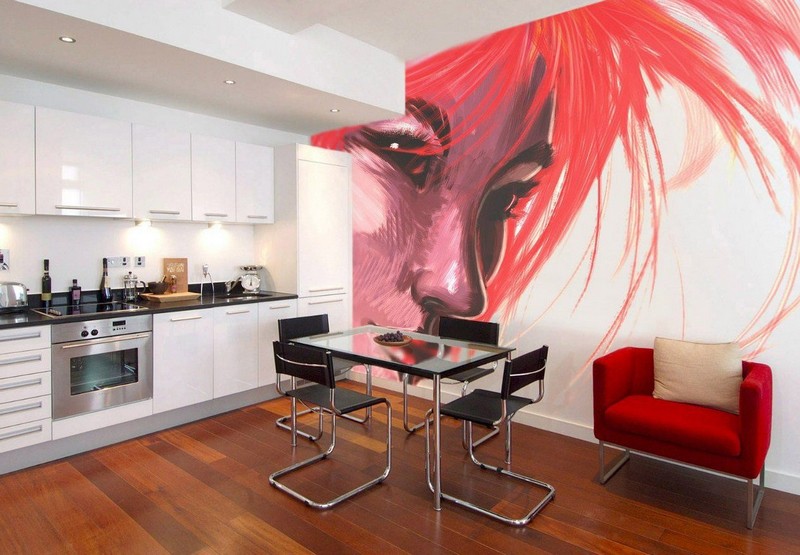 С его помощью вы легко сможете изобразить, то что хотели. Не только живопись помогает в декорировании, как альтернативу можете попробовать наклеить изображения кухонных приборов. Это придаст помещению нужного настроения. Если боитесь незаурядности, тогда используйте тривиальные, но проверенные материалы — ламинат или кирпич.