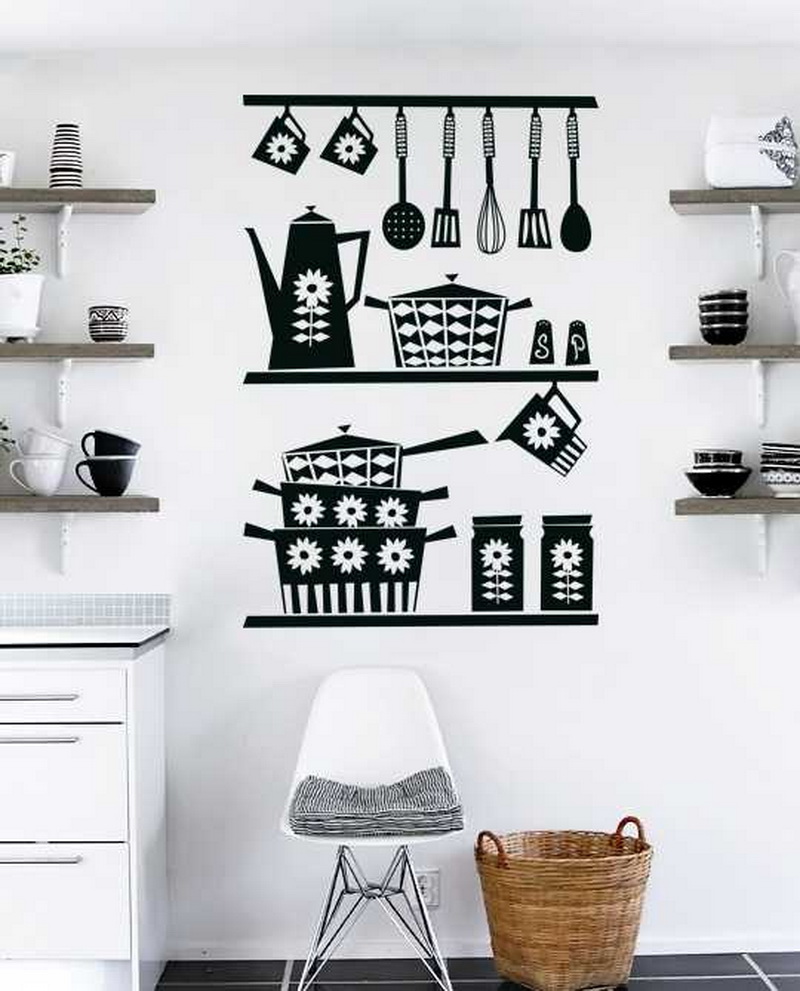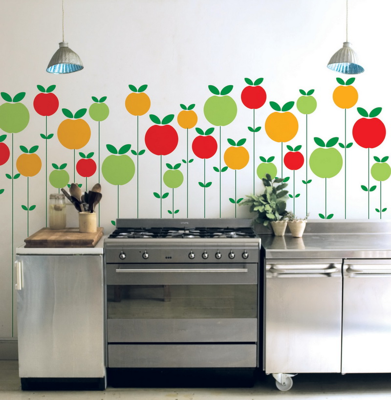 Наклейки бывают разных размеров, форм и видов. Вы можете найти большую вилку, тарелку или натюрморт с аппетитной едой. Они водостойкие, так что не бойтесь их иногда протирать от жира, пыли и грязи.