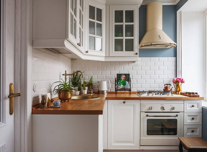 У большинства хозяюшек под готовку выделено немного места. Не всем посчастливилось иметь квартиру-студию или частный дом, но не паникуйте, ведь решение для оформления небольшой площади всегда найдется.