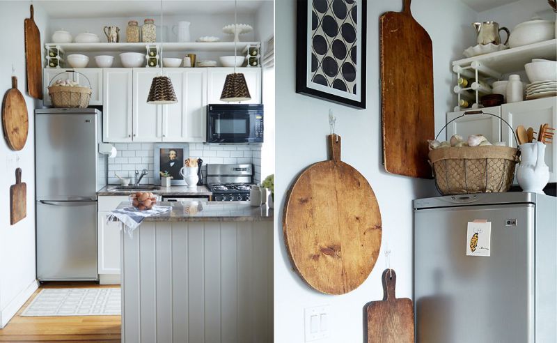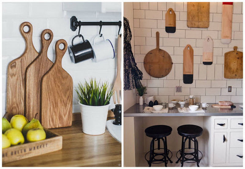 В зависимости от вида интерьера выбирайте либо деревянные, либо пластмассовые доски. Они не только функциональный объект, но и крутой способ заполнить пустое пространство.