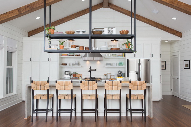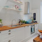 Хотите визуально расширить пространство своей небольшой кухни? Используйте открытые полочки! Такой метод превратит вашу кухоньку в настоящий музей посуды. Вам часто дарят чайные сервизы или редкие коллекционные тарелки, не прячьте их за стеклянными стеллажами, пусть дышат воздухом на радость гостей.