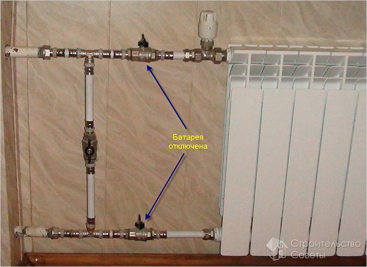 Не стоит забывать, что вся запорная арматура устанавливается одновременно с монтажом радиатора. Если это делается на уже действующей батарее, то необходимо предварительно слить теплоноситель, а для этого придется перекрывать стояк отопления. Такую услугу должна предоставить управляющая компания.