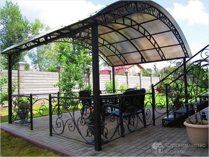 В зависимости от климатических условий региона навес можно сделать полукруглым или, наоборот, скатным – с одной или двух сторон.