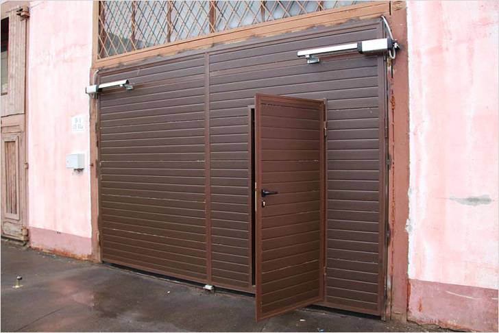 Калитка, встроенная в ворота, не должна мешать открыванию ворот. В откатных, секционных и рулонных конструкциях это важно учитывать. Но в то же время такие ворота с калиткой очень функциональны.