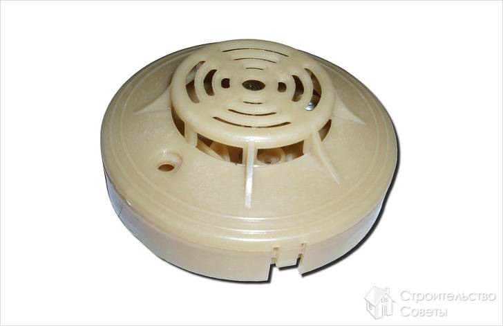 Такой извещатель больше всех пользуется спросом. Это самый простой датчик, который только можно установить. Как уже понятно из названия, в основе его работы реагирование на превышение установленного температурного порога. Лишь только датчик «понимает», что температура в помещении превысила порог (55 градусов по Цельсию), сработает пожарная сигнализация. Но не стоит забывать о том, что ситуации бывают разные. И возгорание далеко не всегда начинается с повышения температуры в помещении. Можно и опоздать с принятием решения по эвакуации людей и спасению имущества. Тем более, если извещатель установлен далеко от очага возгорания.