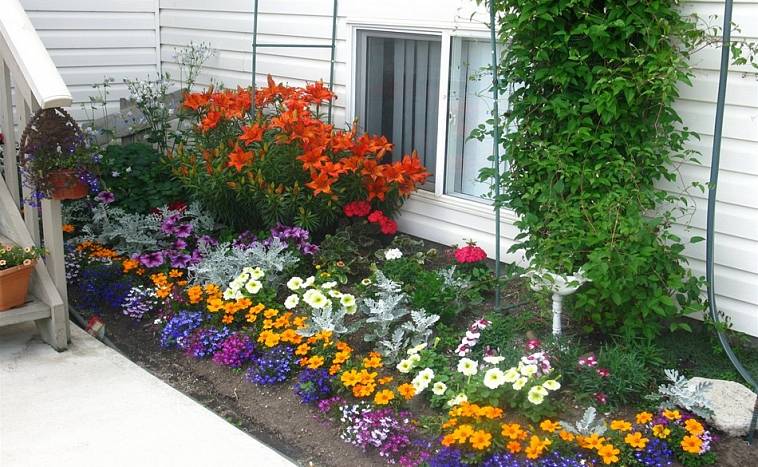 Так выглядит цветник в саду частного дома, фото палисадника которого можно посмотреть ниже.