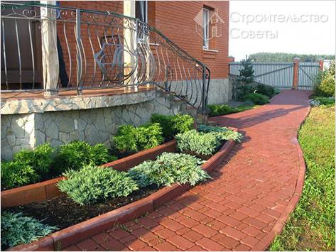 Следующий элемент – дорожка к крыльцу дома от входа в сад. Желательно запланировать ее размещение по самому короткому маршруту. Некоторые дизайнерские решения предусматривают плавные изгибы на тропинке к дому, которые стильно подчеркивают фонарики или декоративные бордюры. В соответствии с теорией модного сегодня учения фэн-шуй, именно изгибы и плавные переходы могут привлечь в помещения извне положительную энергию, благоприятную для всех членов семьи.
