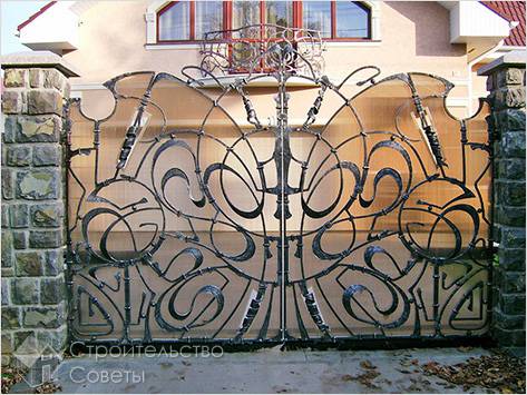 Исключение составляют только этнические стили или узкоспециализированное направление кантри. Но и в таких стилистиках можно найти необычные дизайнерские решения, использовав тонирование металла под состаренную медь или стильный, остромодный сегодня забор и калитку из плетня. Самобытность таким конструкциям могут придать глиняные предметы быта или детали из металла, повешенные на ограждающие конструкции.