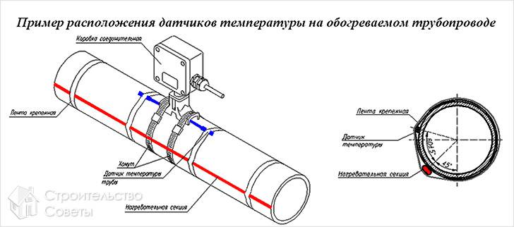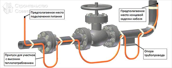 - первым делом нужно отмерить длину кабеля, взяв во внимание длину трубы, которую необходимо обогреть;