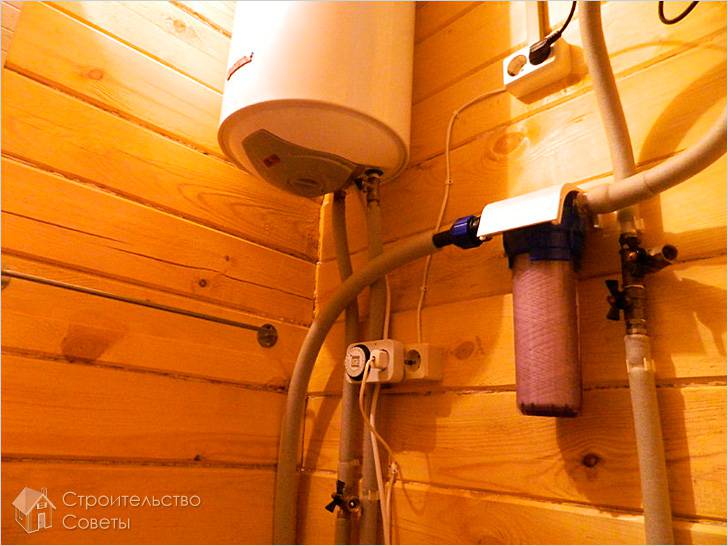 Если вы обустраиваете баню для дачи, но у вас отсутствует напорный водопровод, можно организовать самотечную подачу воды. Для этого необходимо соорудить конструкцию, которая будет состоять из: