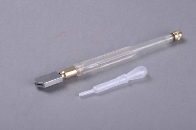 В это время стеклорез можно заправить. Залейте масло в ручку, которая составляет примерно 2/3 высоты бака. Поверните крышку, чтобы отрегулировать скорость потока жидкости. Для такой доводки берут ненужные куски стекла и стремятся получить максимально качественные линии реза. Инструмент проталкивается сверху по мере поступления жидкости в рабочую зону.