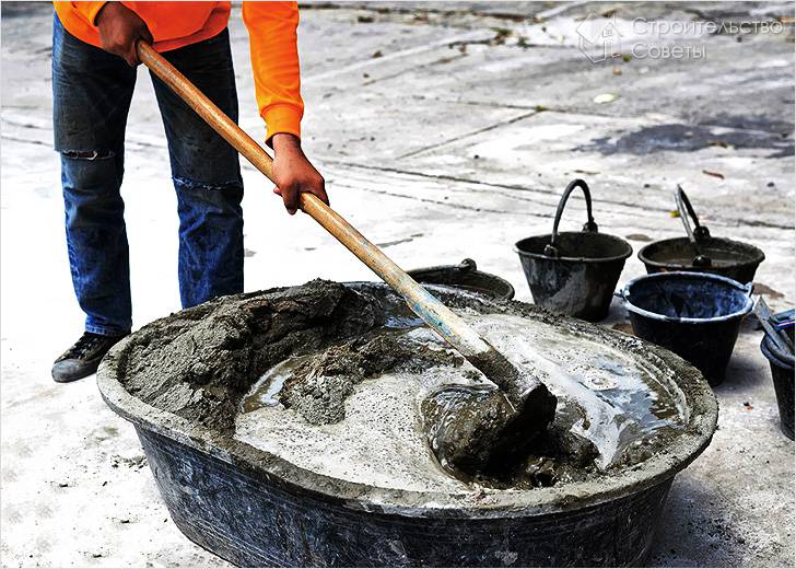 Если бетономешалки у вас нет, то замес можно произвести вручную. Этот процесс намного сложнее. Более того, необходимо подготовить специальную емкость, в которой будет производиться замес.