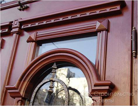 Поскольку древесина дуба обладает высокой плотностью и прочностью, отделанное этим материалом дверное полотно также приобретает повышенные прочностные характеристики. Кроме того, за счет декоративных дубовых накладок повышается устойчивость конструкции ко взлому, так как усложняется доступ к запорным механизмам.