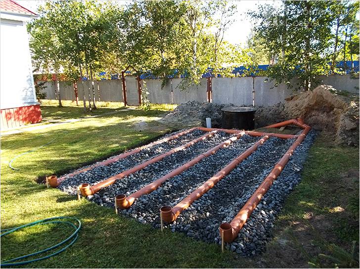 Если на дачном участке грунтовые воды расположены слишком высоко, необходимо сделать фильтрационные поля.