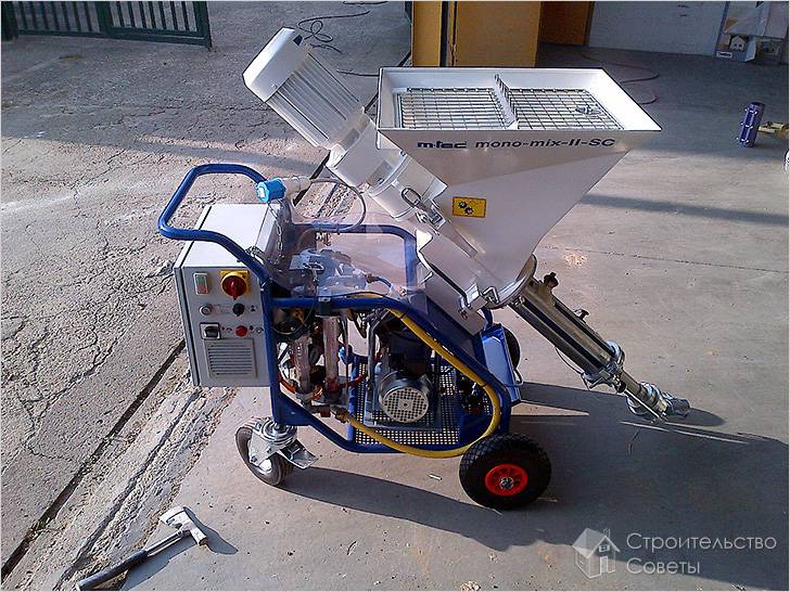 Покупка специальной штукатурной станции целесообразна лишь в том случае, когда площадь предполагаемых работ составляет не менее 900 м2. Вот почему желательно заранее определиться с необходимостью приобретения такого оборудования, поскольку можно будет просто арендовать его на время проведения отделочных работ.