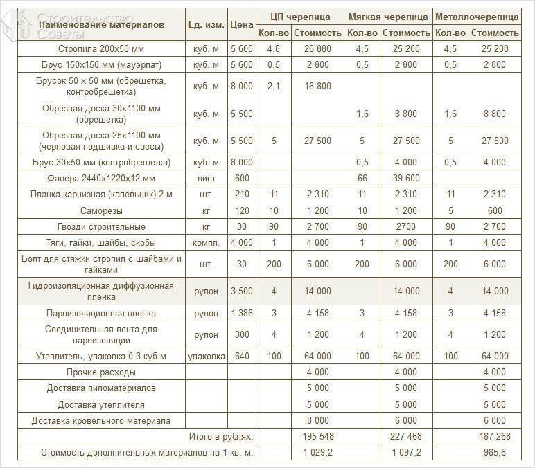 Выбор того или иного вида исходного материала и определяет, в конечном счёте, порядок расчёта стоимости работ, т.е. то, сколько стоит построить крышу дома.