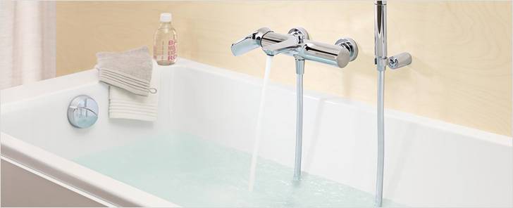 - ванна – подходят врезные и настенные устройства, врезные устанавливаются на борт ванны;