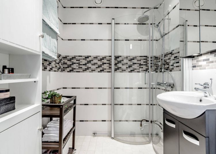 3. Укладывать плитку на стены лучше вертикально, чтобы зрительно поднять потолки. А вот на полу наоборот, стоит использовать диагональную укладку.