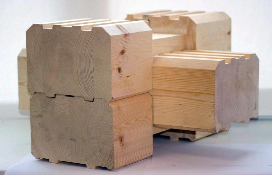 - лиственница. Плюсы: повышенная устойчивость к внешнему воздействию, прочность, красивый внешний вид. Ввиду значительной стоимости лиственницы из неё делают только внешние ламели бруса. К числу ограничений можно отнести: повышенная смолистость (усложняет обработку и повышает вероятность непрочного склеивания), невысокая воздухопроницаемость, сравнительно большая цена. Клееный брус из лиственницы в полтора раза дороже бруса из сосны;