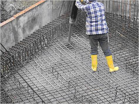 Всем этим требованиям в полной мере удовлетворяет товарный бетон марки БСГ В 22,5 П3 F150 W6, который вы можете без всяких проблем заказать на ближайшем к вам бетонном заводе. Подачу готового бетона из миксера удобнее всего организовать с помощью специального лотка; причём в первую очередь заполняются самые удалённые от места раздачи участки. По ходу заполнения бетонной смесью всего фундаментного пространства необходимо уплотнять её с помощью глубинного вибратора. Его использование позволит вам: