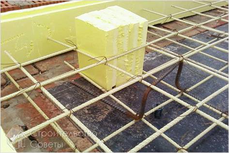 Внешний край каркаса должен немного выступать за опалубку. В результате создается необходимая толщина (минимально 50 мм).