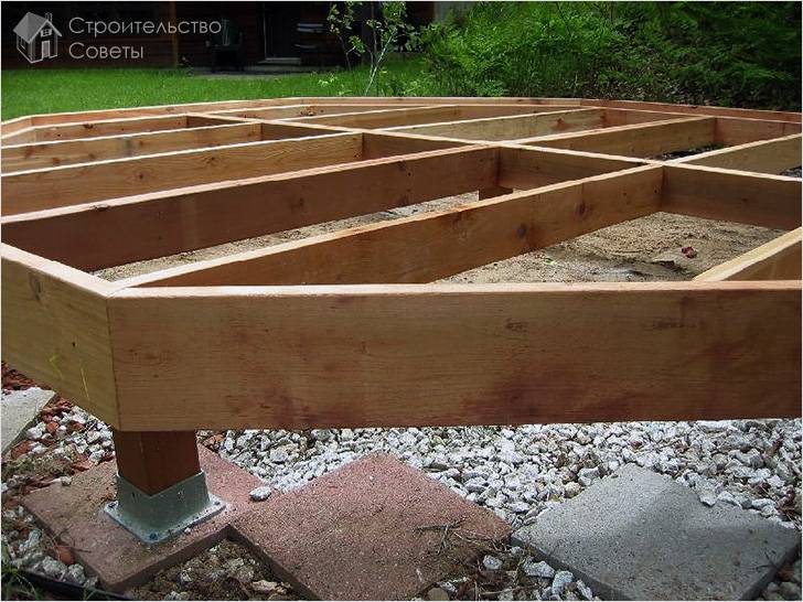 В большинстве случаев основание делается из деревянного бруса 150×200 мм или 200×200 мм. Если постройка будет деревянной, то ростверк также может служить в качестве закладочного венца для стен. Кроме всего прочего, ростверк может быть изготовлен из железобетона. Для этого сооружается опалубка, выполняется армирование и заливается бетоном.